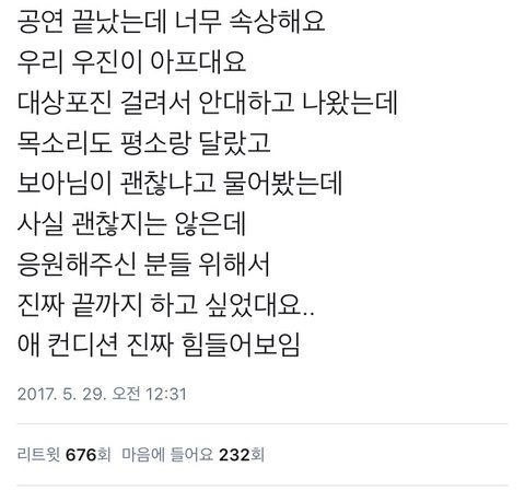 그 아픈거 다참고 무대하는거보고 진짜 얼마나 간절한지 알겟더라 전부터 느끼고잇엇지만