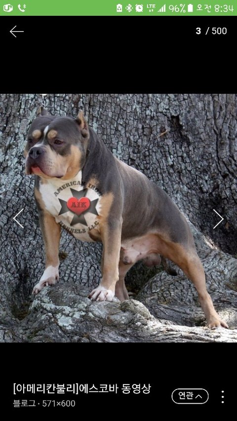 강아지의 종류는 아메리칸 불리라는 중형견 경비견으로 알고있습니다.