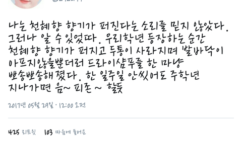 한 일주일 안 씻어도 주학년 지나가면 음~피존 할듯
