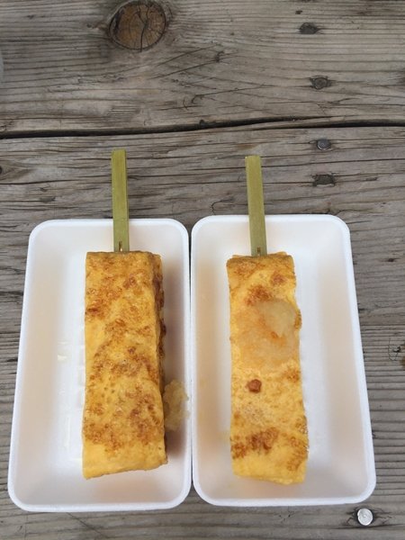 줄이 많이 서있길래 궁금해서 먹어본 막대 계란말이 맛은그냥 설탕쏟은 계란말이 맛인데 100엔이라는 싼가격때문에 줄이긴듯... 생각보다 작아서 두개먹었습니다.