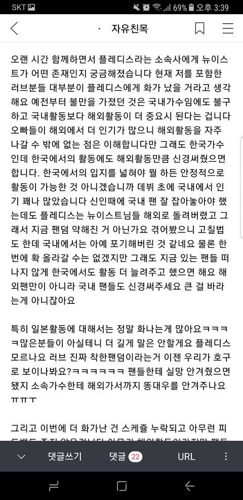 내가 하고싶은 말은 "뉴이스트가 망할만해서 망했다, 안떴었던 건 멤버들 탓이다, 누릴거 다 누렸으면서 왜 소속사를 탓하냐" 이런 글들이 꽤 보여서 쓴는 글이야.