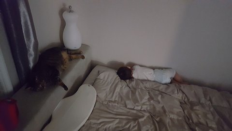 애가 깨어있는 시간은 먼지에겐 고통의 시간인지도 모르겠어요.