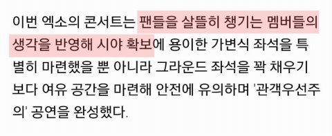 이번엔 그라운드도 의자를 놓은 이유는 팬들이 다칠걸 걱정한 엑소멤버들의 의견을 반영한거라고함ㅜㅜㅜㅜㅜ덕분에 7만명 관객 사고없이 콘서트를 갔다왔음