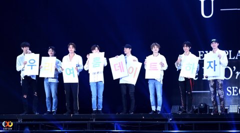 엑소의 이벤트 문구 '우리같이 여름 데이트하자' 와 콘서트 둘째날 기자회견을 따라 이번 여름에 컴백할것같음 드디어 17년 첫 컴백!!