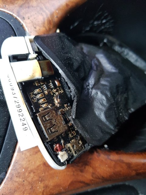 연기가 나는 근원지를 막 찾는데, 아니 이런,,,, 보조배터리가 문제 였습니다. 터졌더라구요. 잠시 꽂아놓는다고 컵홀더에 놓고 충전잭 꽂아놧는데, 차량에 시동이 걸린상태도 아니고, 전원 충전중도 아니고, 차량 실내가 뜨거운 시간도 아니고, 대체 왜 터진건지 이유를 모르겠습니다. 컵홀더에 보조배터리가 녹아 달라붙어있습니다. 조금만 더 크게 터졋더라면 시트에 옮겨 붙어 차량이 불에 탈뻔했습니다. 며칠간 차에 탄내가 찌들어서 머리가 너무 아프더군요.