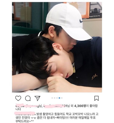 밤샘촬영하고도 학교 갔나봐 ㅜㅜ재찬이도귀엽넼ㅋㅋㅋㅋㅋㄱ난 첨에 담임쌤아니고 매니저이신줄 알앗음ㅋㅋ지녕이사진 앞으로도 부탁드려요 징여ㅕ이담임쌤..♡♡