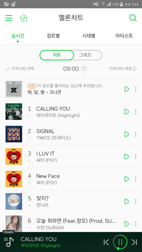 콜링유 9시차트 서수 1위