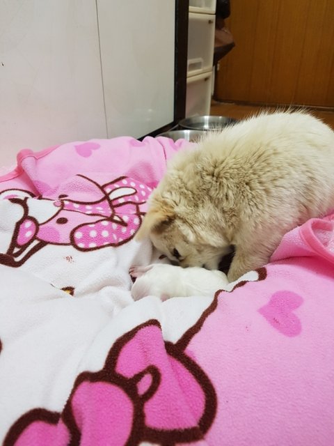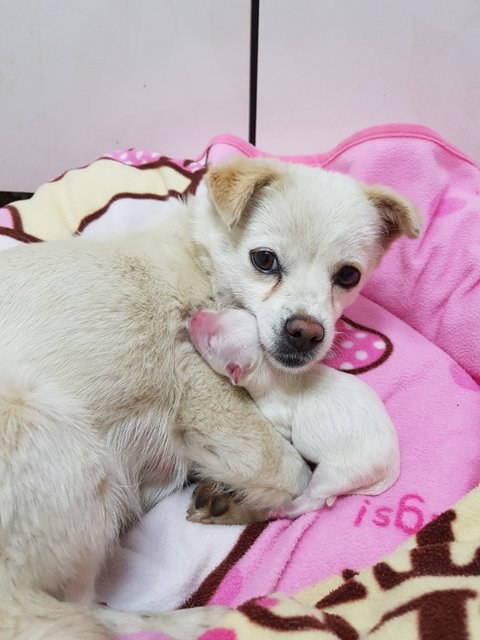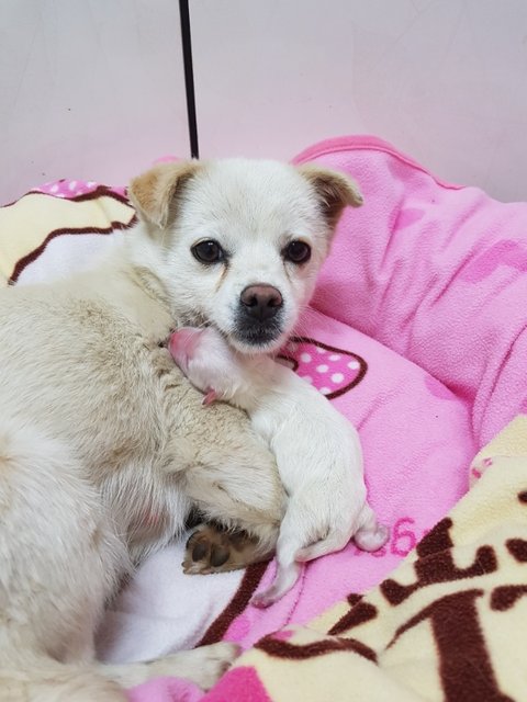 입양이동을 끝내고 집에와보니 혼자 힘겹게 새끼를 낳았나봅니다.