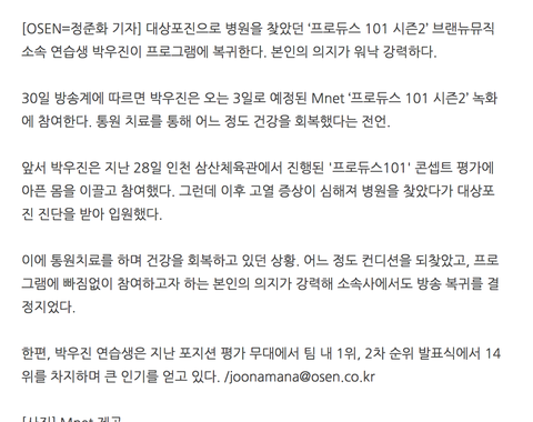 본인의 의지가 너무 강력해서 완전히 나은 것도 아니고 며칠밖에 안지났는데도 녹화 복귀한대..ㅠㅠㅠㅠㅠㅠㅠㅠ얼른 완치해라 우진아ㅠㅠㅠㅠㅠㅠ 고마워 사랑해ㅠㅠㅠㅠㅠ