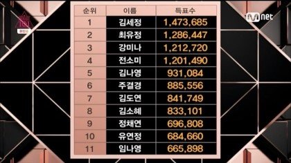 개인적으로 10만표를 획득하는 연생이 11위권 밖이고