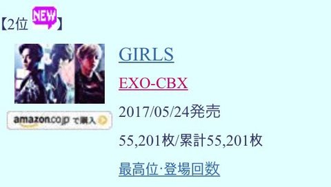 첸백시 주간오리콘차트 2위!(시우민)