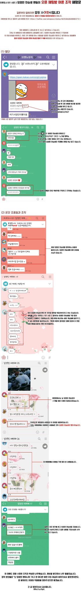 그리고 위 사진에서도 보이듯 강다니엘 여론 조작 사건과 임영민 팬들이 카톡에서 돌려까기했다는 사실은 허위 무근으로 밝혀졌습니다 임영민 안티들에 의해 악위적으로 조장된 사태라는 것이고 이에 상처받으신 강다니엘 팬분들께서는 꼭 이글을 읽어주셨으면 좋겠습니다