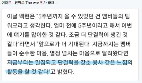 the war 애초에 별로 안 믿었는데 백현이가 말한 거 때문에 믿어짐...