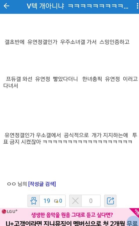 유연정갤에서 상균이 투표보이콧 시킨년이 브이텍임