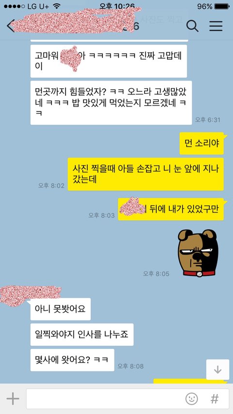 무슨 언질을 받았는가 한참 후에 "와줘서 고마워요" 등의 카톡을 받았지만 어찌