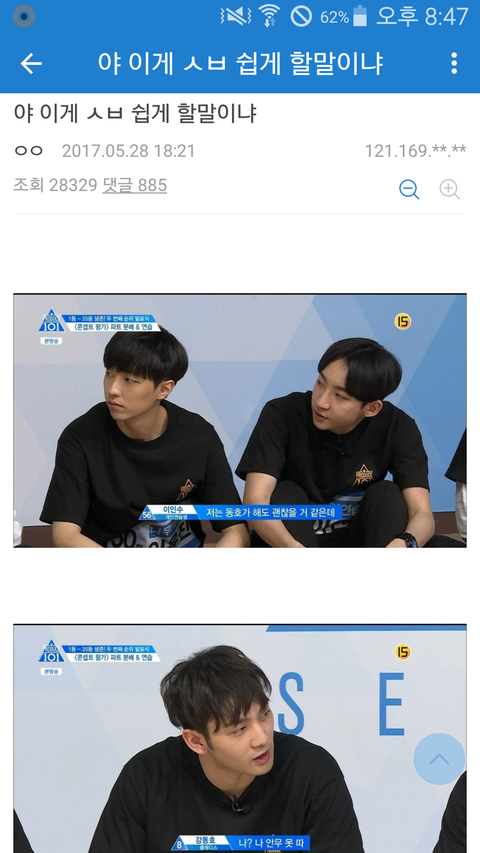 아 진짜 ㅋㅋㅋ 나 원래 댓글 안달고 눈팅만 하는데 ㅋㅋㅋ 프듀 1도 안보고 프듀2도 어쩌다가 상남자 2조 우연히 보게 된 동호 머글 팬인데 ㅋㅋ진짜 저렇게 깔수록 나는 투표 더 열심히 하게됨 원래는 투표도 안하고 그냥 보기만 했는데 너무 까여서 티몬 투표3일 하다가 이제 엠넷도 파서 하고 있음