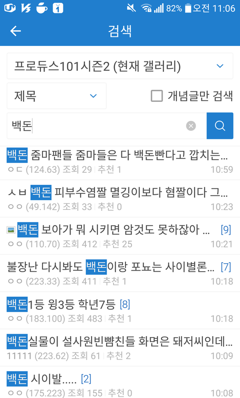 저런 이유없는 인신공경성 글이 한페이지만 해도 10개는 넘게 올라옴 자기들이 쓴글 자기들이 응원하는 연습생한테 꼭 보여주고 싶다