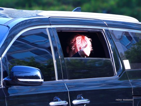 경연 출근길에서 팬들 보이니까 창문 내리고 하트하는 모습