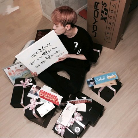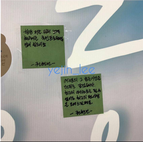 팬들이 손수적은 문구에 뽀뽀하는 모습이 너무 좋다