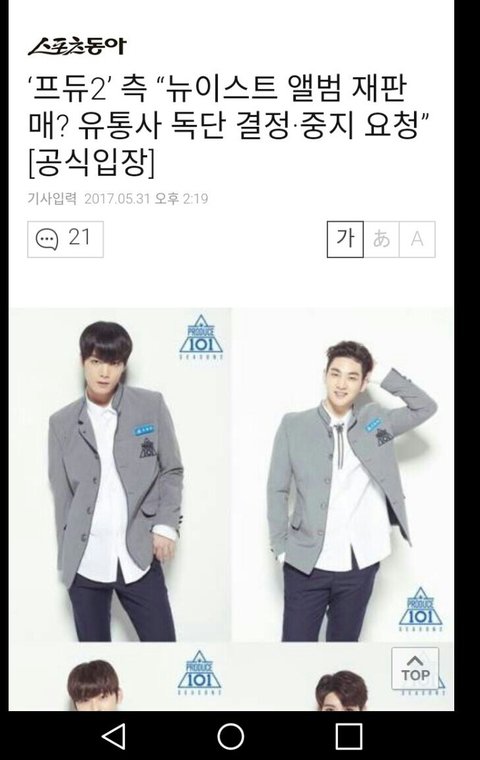 강동호 김종현 황민현 다 순위높아지니까 불안해서