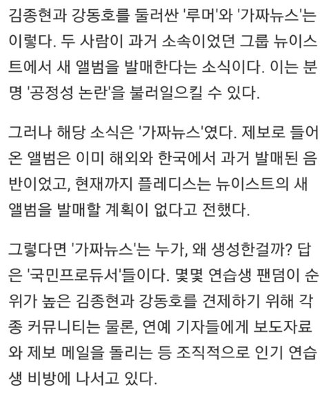 프로듀스 101 출연자 플레디스 소속 김종현 황민현 강동호 최민기가 몇년전에 냈던 앨범이 재발매된다는 이야기가 프듀갤을 중심으로어제 새벽 온갖 커뮤니티에 동시다발적으로 뿌려지고(사실확인결과 재발매 아님ㅇㅇ)