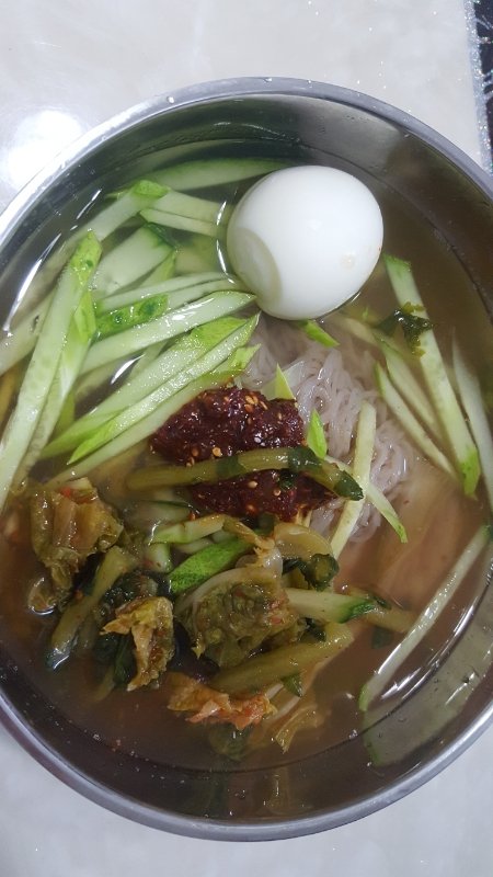 이건 소면이랑 김치로 비빔국수 한건데 이것도 삼걉살이 없어서...