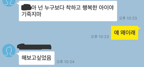 그러니까 다른반에 내 부라ㄹ..친구가 일케 보냇다 진짜 뜬금없이.. 아무렇지않은척했는데 솔직히 눈물났어ㅠㅠㅠ