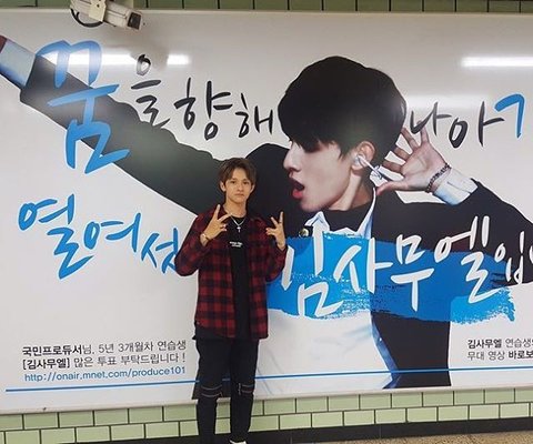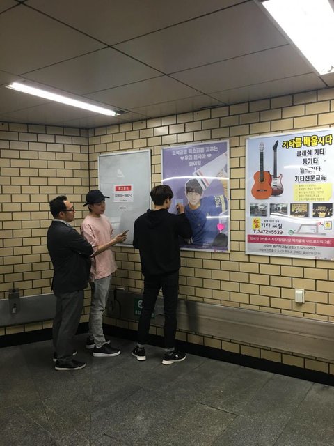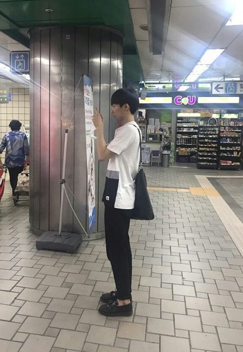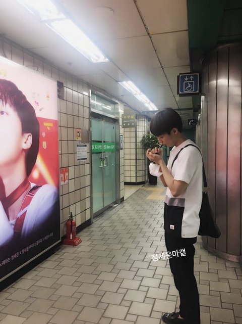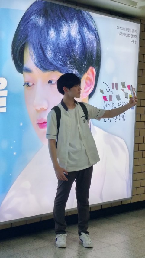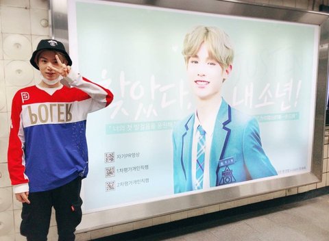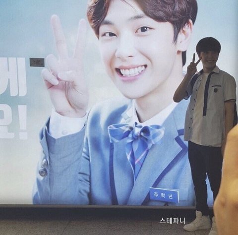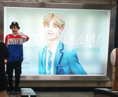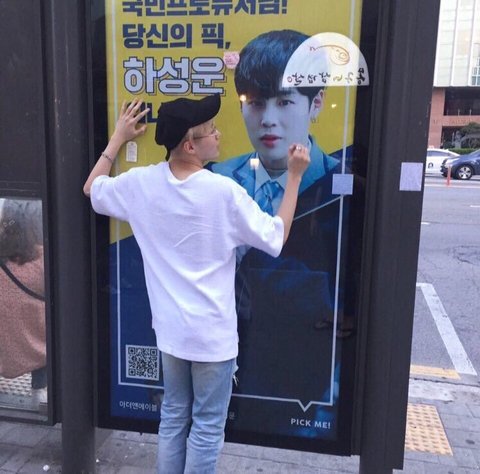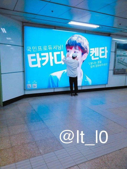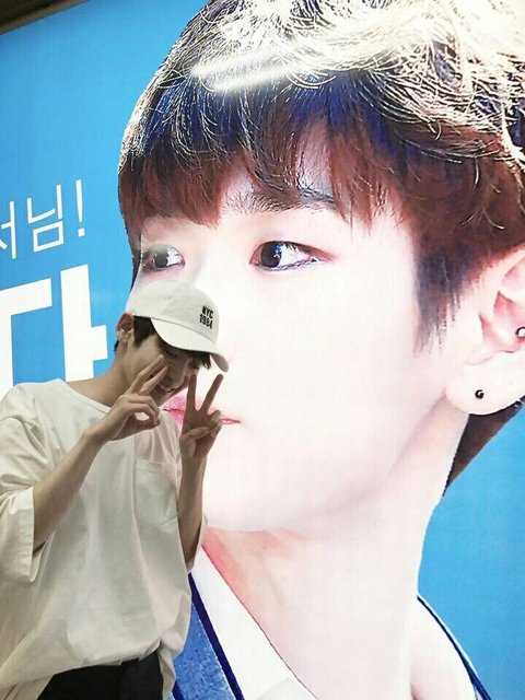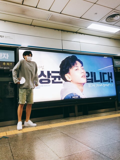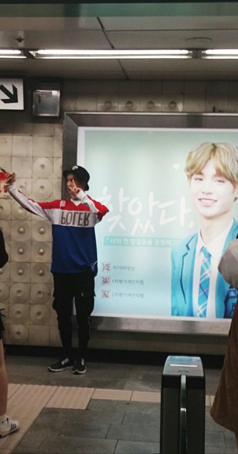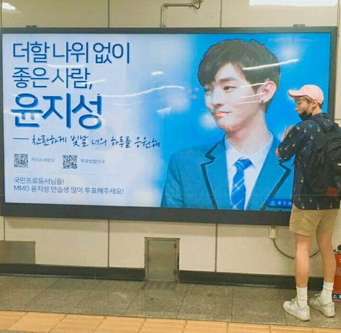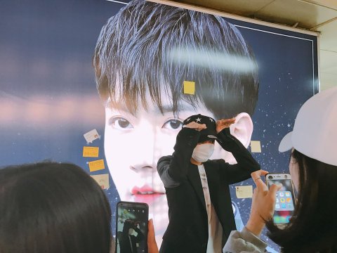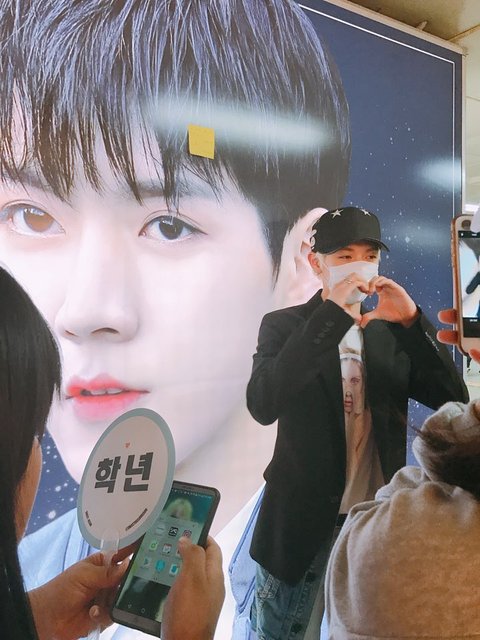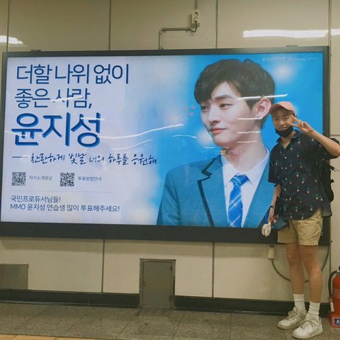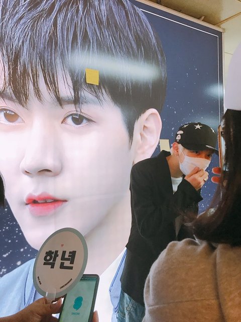 강다니엥 광고판 앞에서 윤지성 같이 생긴 마스크 쓴 남자가 셀카를 찍고 갔다고함ㅋㅋㅋ
