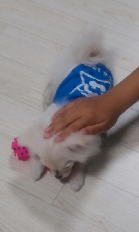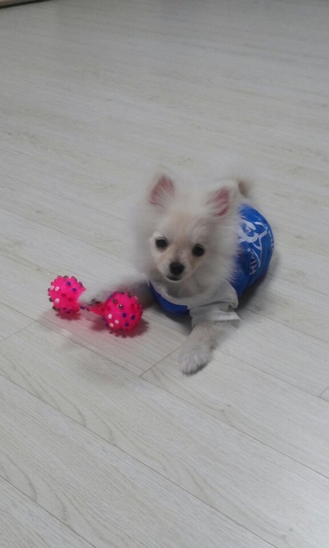 만4개월되도록 분양이 안되서...데리러 갔을때는 정말 털 다 빠지고 꼬질꼬질 했었는데...