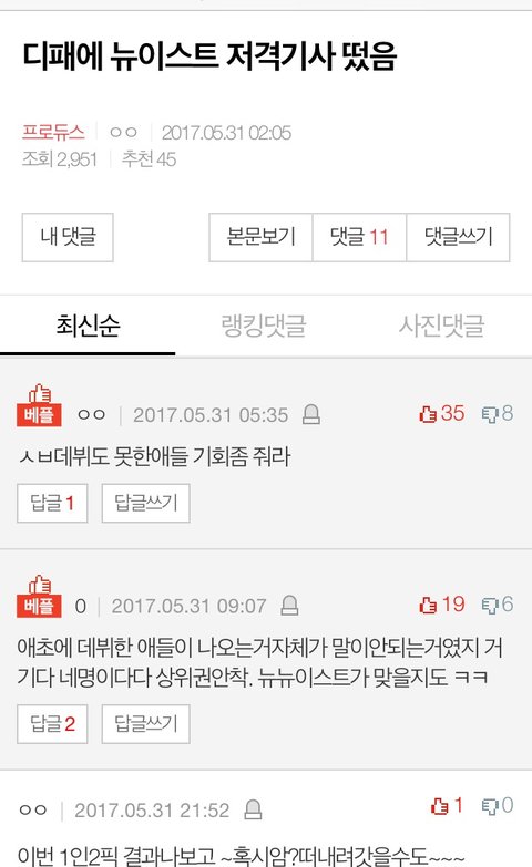 프로듀스 재밌게 봐서 팬톡이 있길래 와서 베스트글 보는데 어제 베스트 글이 다 이렇더라? 원래 배척이 심함?