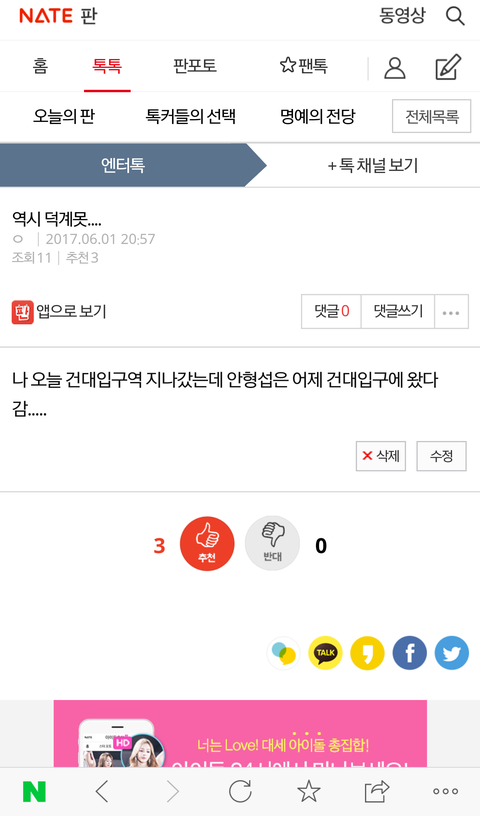 아까 이 글 쓴 앤데 오늘도 건대입구에 안형섭 왔다감.....