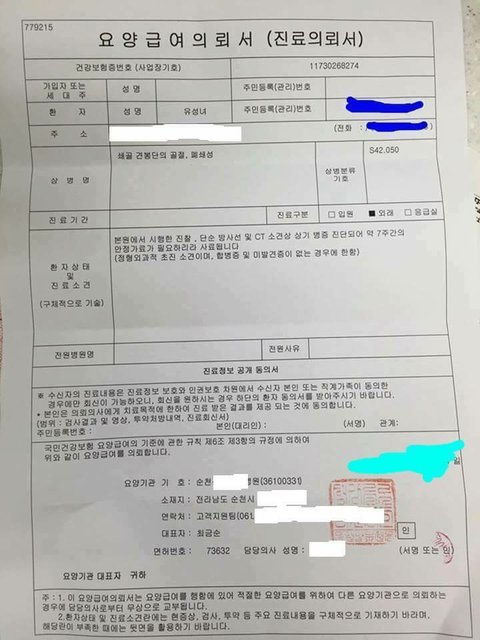 밑에 사진보면 아실겁니다 어깨 쇄골뼈 골절 전치 7주가 나왔습니다 저는 2017년5월5일 화요일이되면 경찰에 신고를하여 고소처리하고 요양병원으로 경찰동원하여 신문사 기자들과함께 취재 및 조사를 할예정입니다