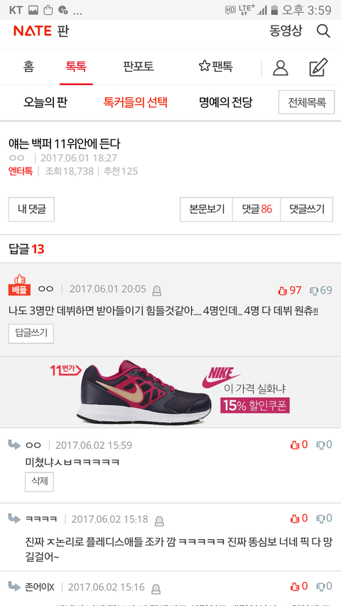 아니 진심으로 11인중에 3명이 들어가는게 말이 되냐고 데뷔하고 할거 다해본 6년차가수가