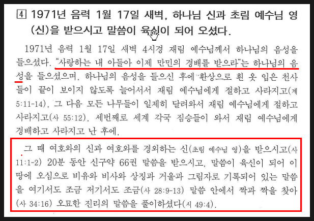 "1967년 성령의 계시에 이끌려 장막성전에 입교했다"고 주장하는 것과 매우 비스므리합니다. ↓