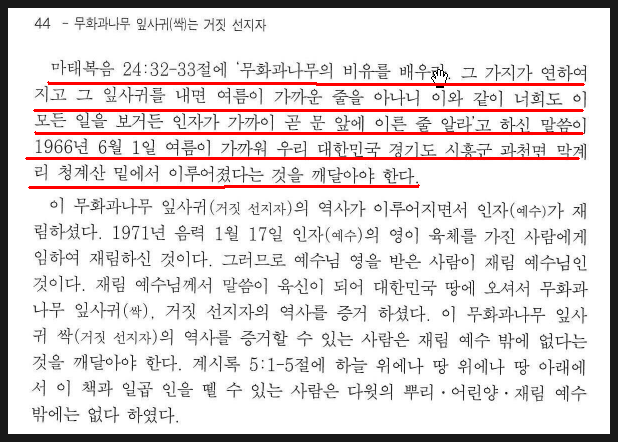 신천지 실상교리와 크게 다르지 않습니다. 주목해서 보아야 할 대목은,