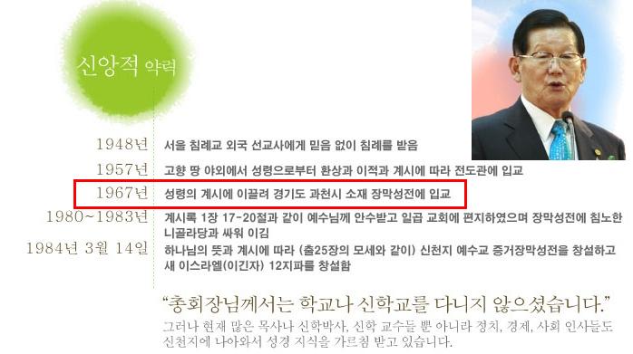 신천지 이만희교주도 예외없이 자신이 몸담고 있던 과천장막성전의 유재열 교주를
