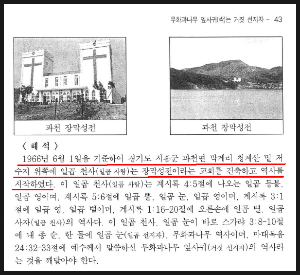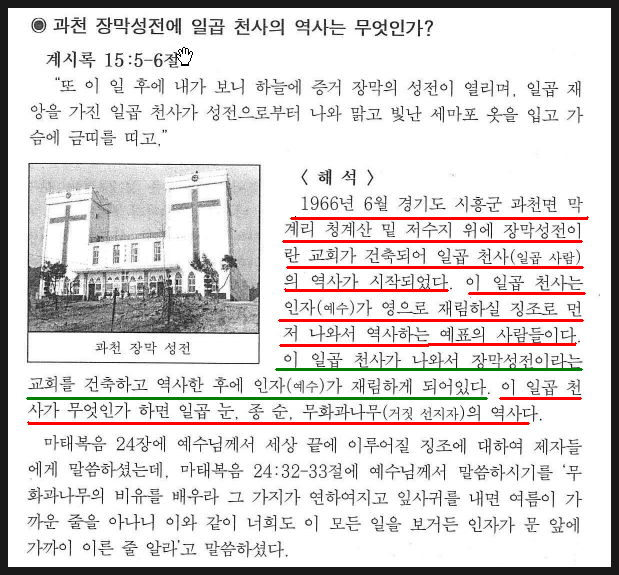 일곱 천사에 대한 성경적 인용구절과 사진 등이 신천지의 실상과 거의 똑같으며,