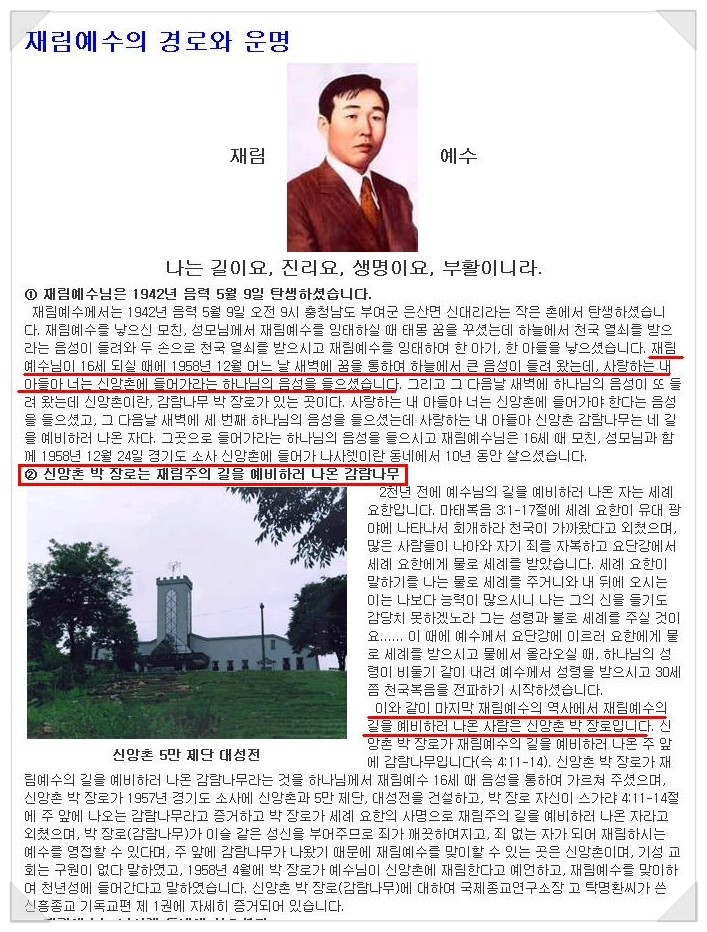 여러분들이 배운 신천지 실상과 비교해시면 너무나 비슷하다는 생각이 들지 않습니까?