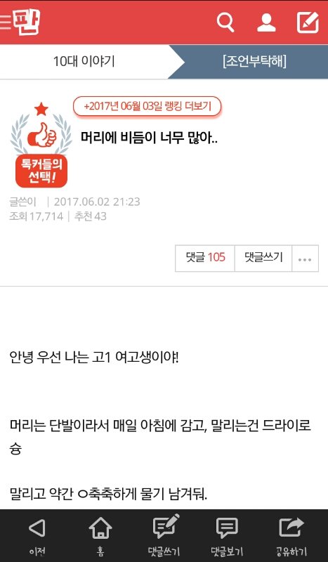 쓰니야 너 오늘 머리 안감았구나?