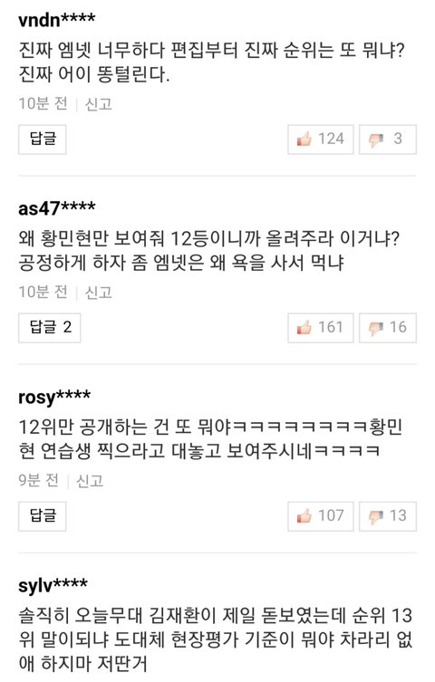 12인 것도 싫은데 온갖 커뮤에서는 황민햔 욕 밖에 없어 아니야? 여기만 봐도 네케만 봐도