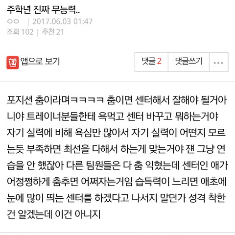 개 큰 따봉 ….. 나도 컬러 ..? 까진 기웃거렷다 365일 중 360일 싸우길래 지쳐서 떨어져 나옴 .. 팬들 기력 ㅈㄴ 좋아