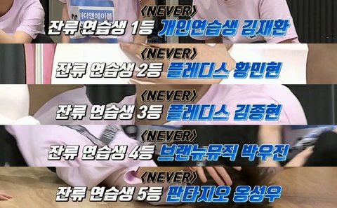 순발식에서 전원 생존한 네버조는 4명을 방출해야함.