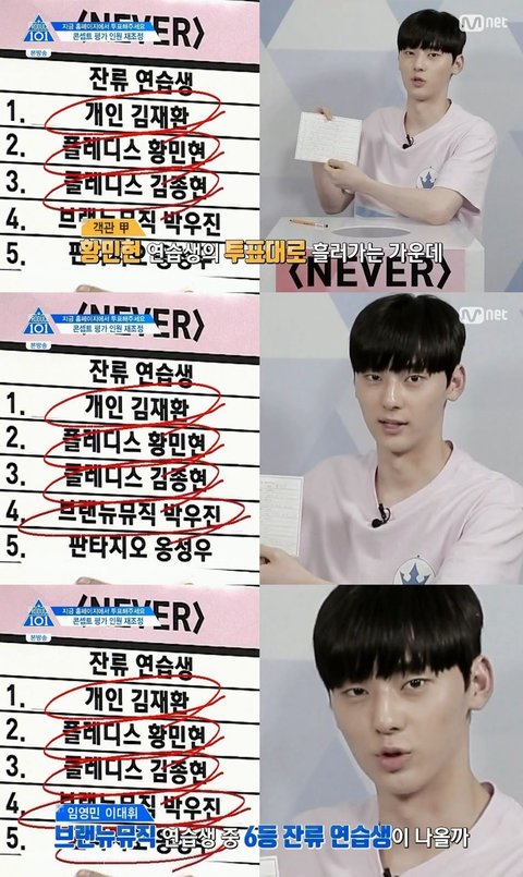 네버조 구성원들 모두의 투표하에 잔류 연습생을 발표하기 시작하는데