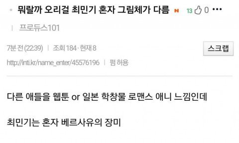 여초가 문제가 아니라... 유명세가 있으니만큼 안티는 늘 있었지만 몇년전에 탄핵시위에 음식트럭 보내고나서부터 악플이 ㅈㄴ극성맞아짐