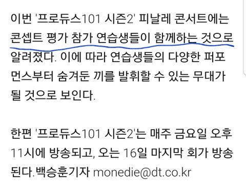 기사보면 콘셉평가 연습생까지 출연한다는 이야기가 있다더라. 이러면 엠넷에서 그 돈 주고 개최하는 콘서트에서 얼굴내비치는 연습생 커트라인을 딱 일주일 보여주고 탈랏시켜버린다? 그건 엠넷스럽지가 않지. 단물 쪽쪽 빼먹을만큼 빼먹을려면 생방까지 보내주지 않겠어??