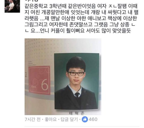 얼마나 자존감 낮으면 남의 사랑까지 따라하고 불쌍하다 ㅠ 채읍읍이 해명글 올린 거 보면 정신연령 어린 게 보임 화난다고 2살 누나한테 니니거리고 병신거리고 전화해서 소리지르고 나잇값도 못하는 게 결혼은 무슨... 군대나 다녀오길 사람 사귀는게 다 비슷하다고? 이렇게까지?