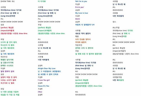어제 프듀보고 통곡했던 지성맘임. 하 진짜 윤지성은 착한 바보 같음..팬으로서 윤지성 욕먹을때마다 무시하고 멘탈 관리 했는데 이번 방송 보고 진짜 너무 속상하더라 ㅠ 이 글 쓰는 이유는 절대로 특정 연습생 비하할 의도가 없음 그냥 너무 아쉬울 뿐이지...밑에 사진들을 보면 알겠지만 윤지성 바보가 자기입으로 래퍼2는 파트가 적어서 할사람 없을꺼라고 했는데 성운이 들어오니까 자기 서브보컬 내어주고 자기가 래퍼2 했음 하ㅠㅠㅠㅠㅠㅠㅠㅠㅠ보라색이 윤지성 파트ㅠㅠㅠㅠㅠ
