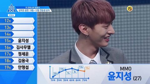 지금은 15위로 데뷔권 밖이야...