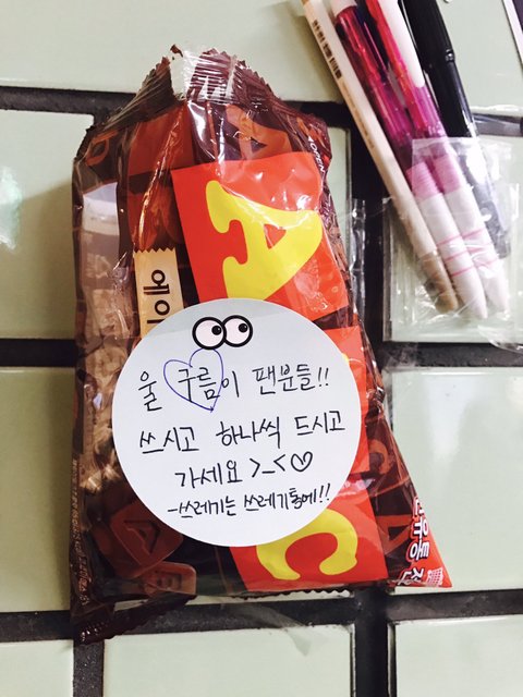 포스트잇, 테이프, 펜도 다 구비해놓고 성운이가 의도치않게 ppl한 피로에벌꿀이랑 그밖에도 초콜릿, 포토카드, 사탕같은것도 팬들 먹으라고 놓고감ㅋㅋㅋㅋㅋ