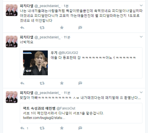 다니엘 뿐만이 아니라 트위터에서는 다른 연생 욕하는게 마치 스포츠처럼 소비되고 있음.